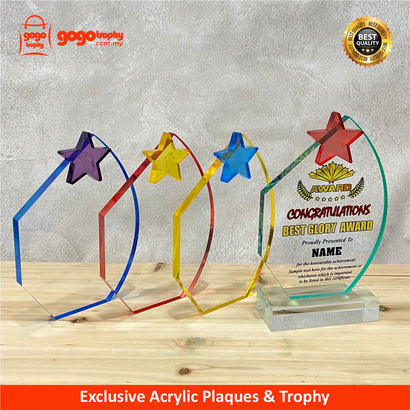 5124 Star Acrylic Plaque the new mixtures highly-performance hybrid technologies with combination of UV-LED EMBOSS PRINTING will feature it's own special touch feeling and unique colours finished product . The noble qualities of the products will bring englightenment and will be loved by the consumers . FREE UV EMBOSS PRINTING !