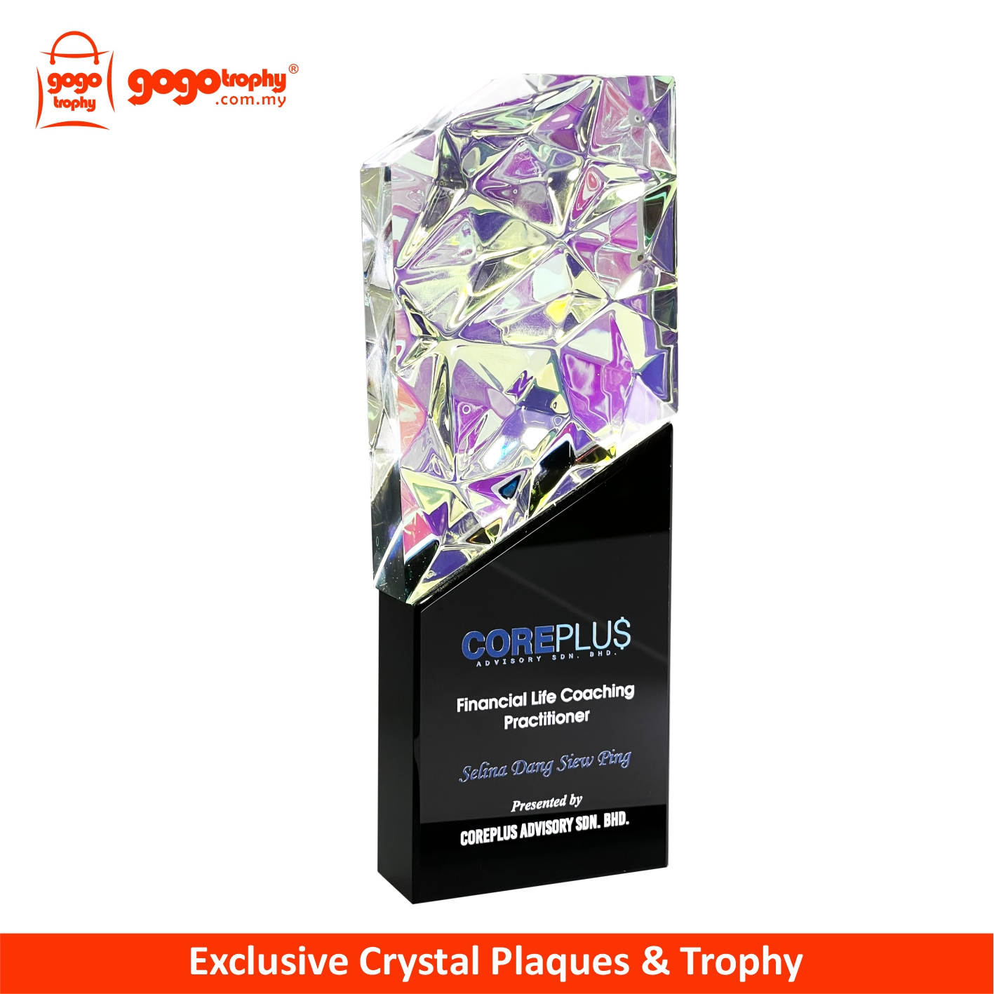3129 Exclusive Crystal Plaque the new mixtures highly-performance hybrid technologies with combination of UV-LED EMBOSS PRINTING will feature it's own special touch feeling and unique colours finished product . The noble qualities of the products will bring englightenment and will be loved by the consumers . FREE UV EMBOSS PRINTING !