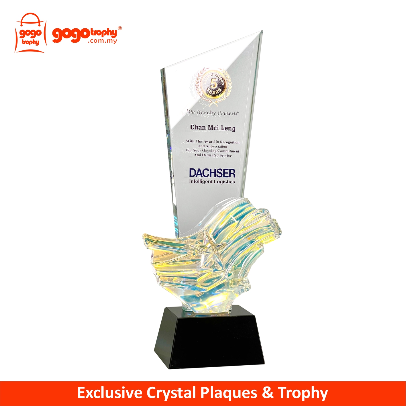 3132 Exclusive Crystal Plaque the new mixtures highly-performance hybrid technologies with combination of UV-LED EMBOSS PRINTING will feature it's own special touch feeling and unique colours finished product . The noble qualities of the products will bring englightenment and will be loved by the consumers . FREE UV EMBOSS PRINTING !