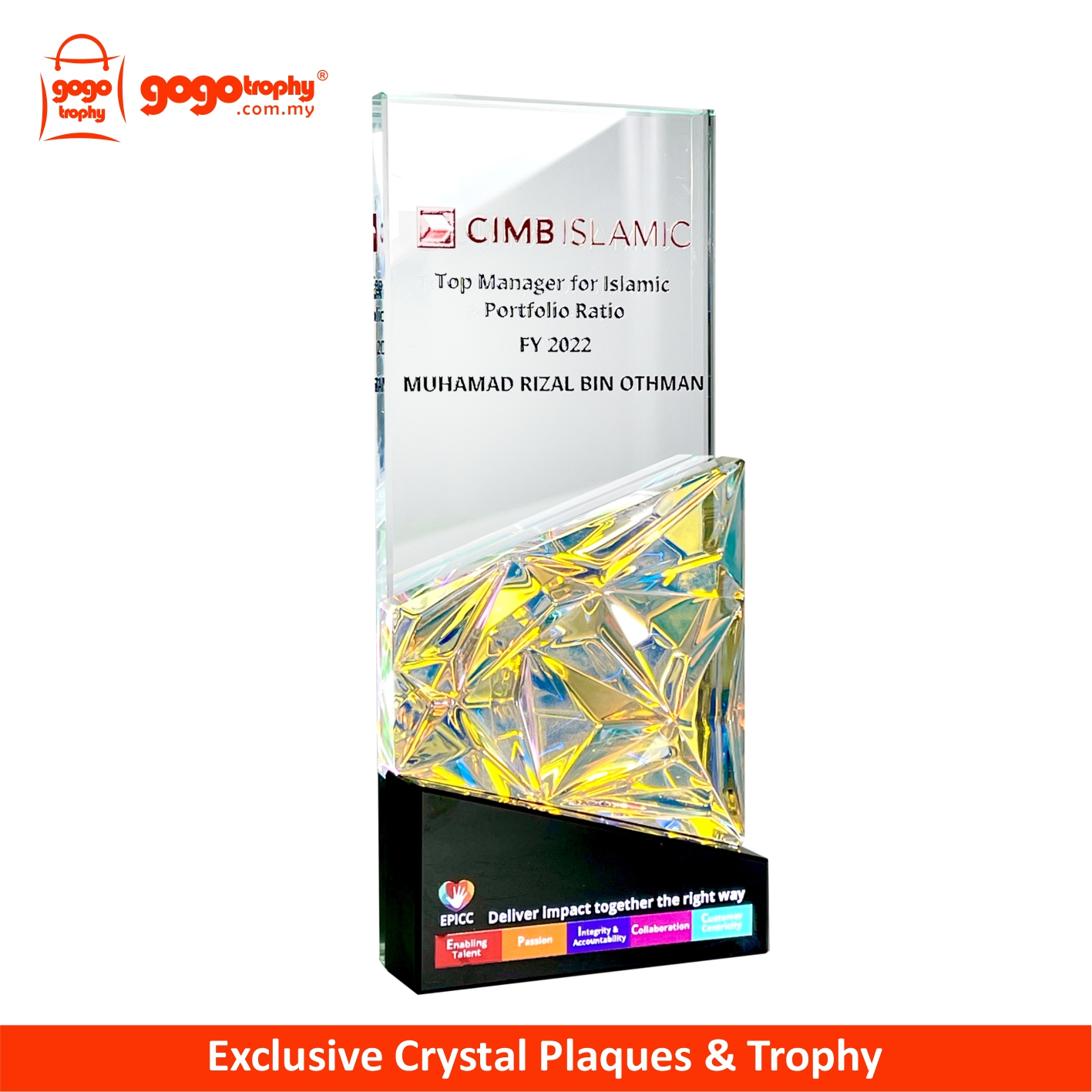 3142 Exclusive Crystal Plaque the new mixtures highly-performance hybrid technologies with combination of UV-LED EMBOSS PRINTING will feature it's own special touch feeling and unique colours finished product . The noble qualities of the products will bring englightenment and will be loved by the consumers . FREE UV EMBOSS PRINTING !