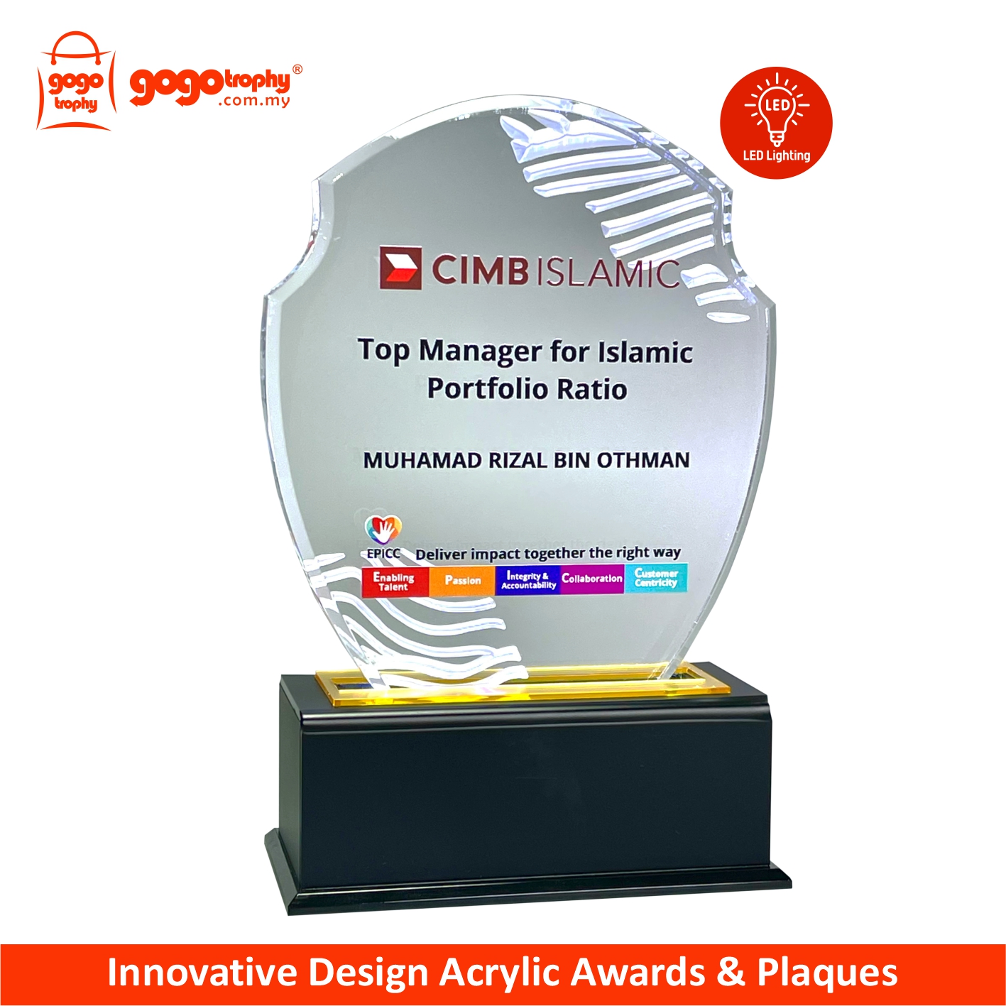 5177 Innovative Design Acrylic Plaques (LED Lighting) the new mixtures highly-performance hybrid technologies with combination of UV-LED EMBOSS PRINTING will feature it's own special touch feeling and unique colours finished product . The noble qualities of the products will bring englightenment and will be loved by the consumers . FREE UV EMBOSS PRINTING !