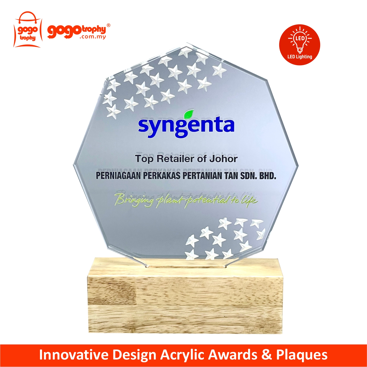 5191 Innovative Design Acrylic Plaques (LED Lighting) the new mixtures highly-performance hybrid technologies with combination of UV-LED EMBOSS PRINTING will feature it's own special touch feeling and unique colours finished product . The noble qualities of the products will bring englightenment and will be loved by the consumers . FREE UV EMBOSS PRINTING !