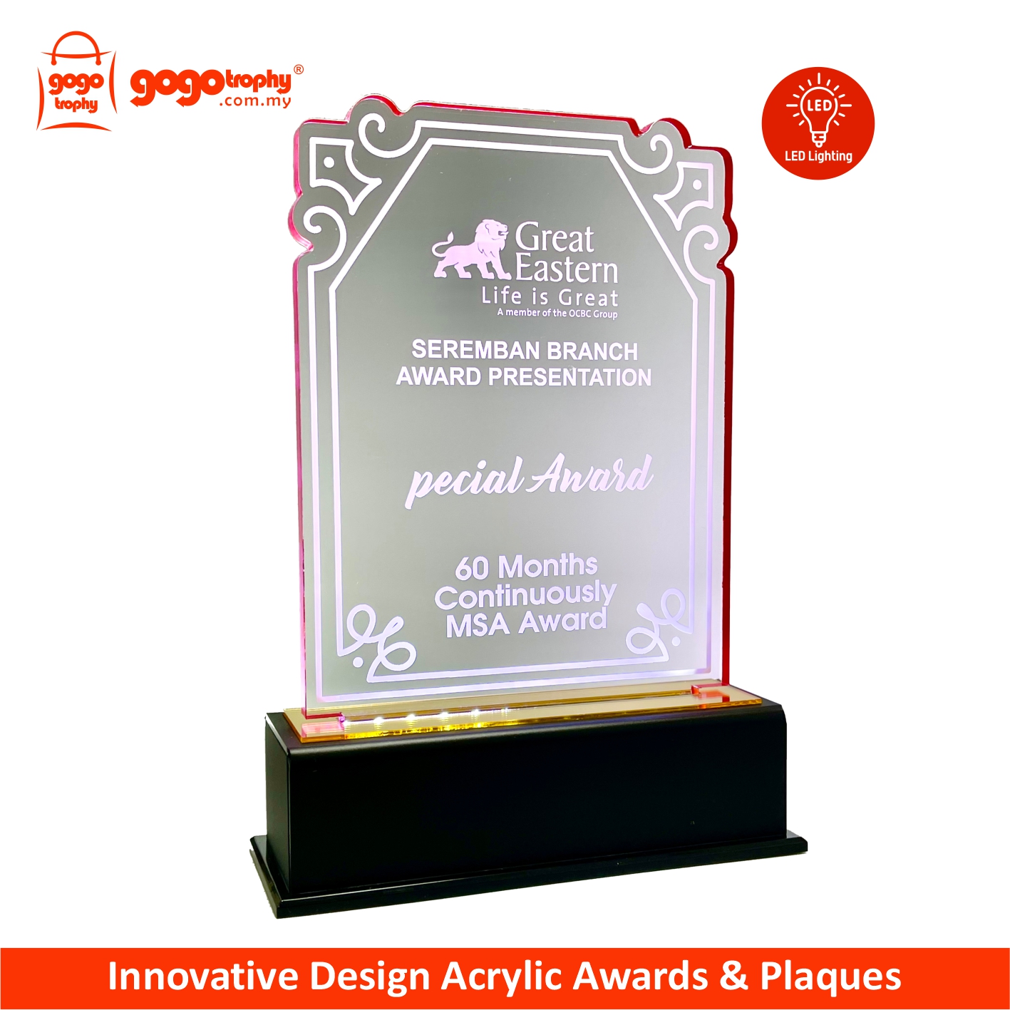 5201 Innovative Design Acrylic Plaques (LED Lighting) the new mixtures highly-performance hybrid technologies with combination of UV-LED EMBOSS PRINTING will feature it's own special touch feeling and unique colours finished product . The noble qualities of the products will bring englightenment and will be loved by the consumers . FREE UV EMBOSS PRINTING !