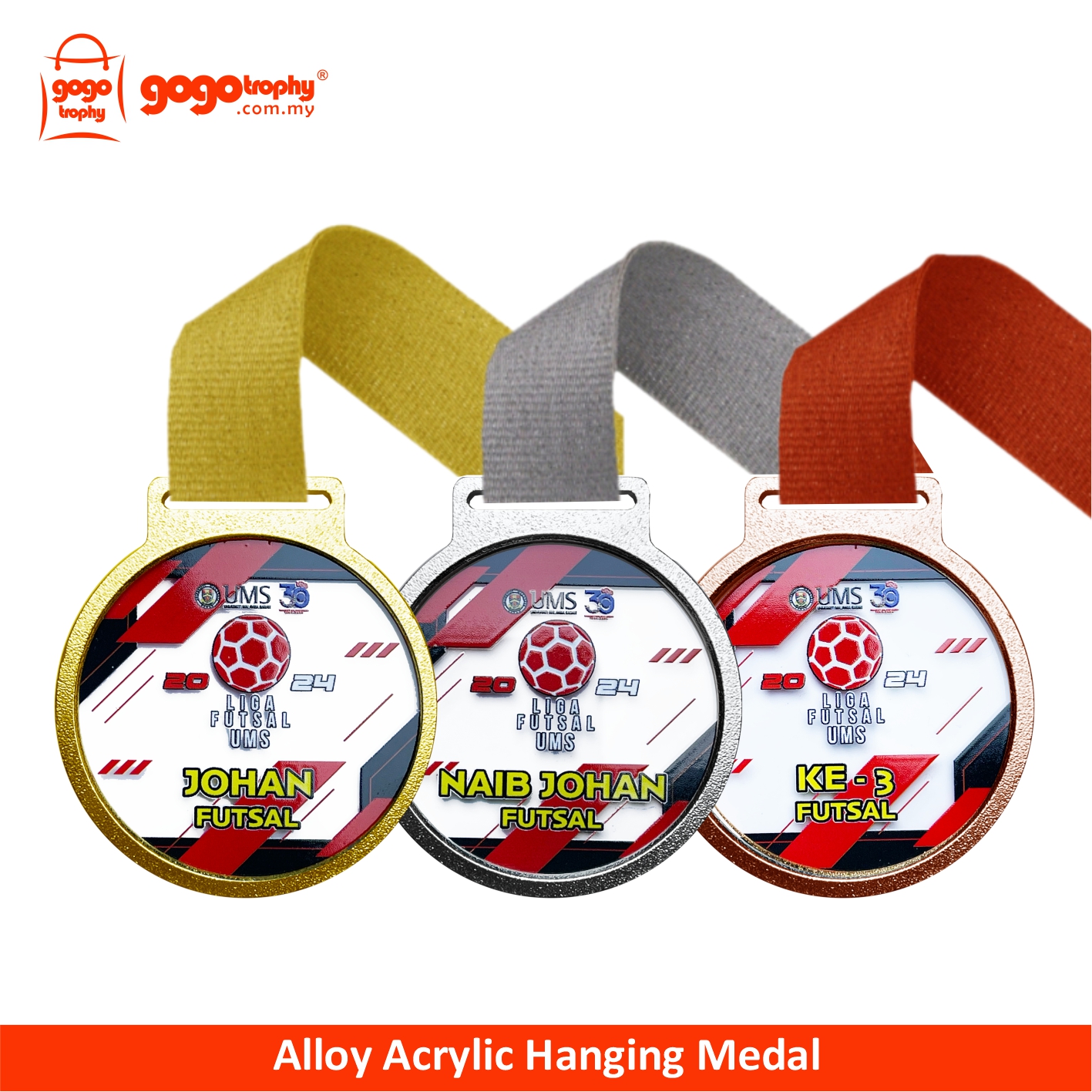 8363 Alloy Acrylic Hanging Medal (GOLD, SILVER, BRONZE) . FREE PRINTING !