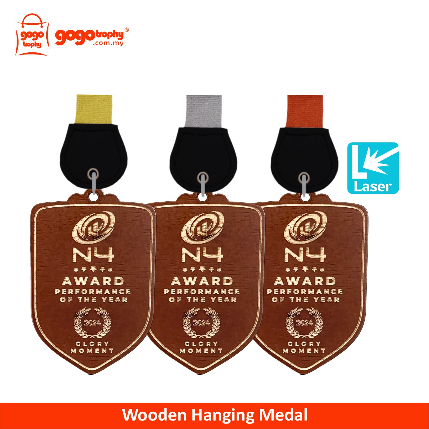 7577 Wooden Hanging Medal (GOLD, SILVER, BRONZE) . FREE LASER FINISHING !