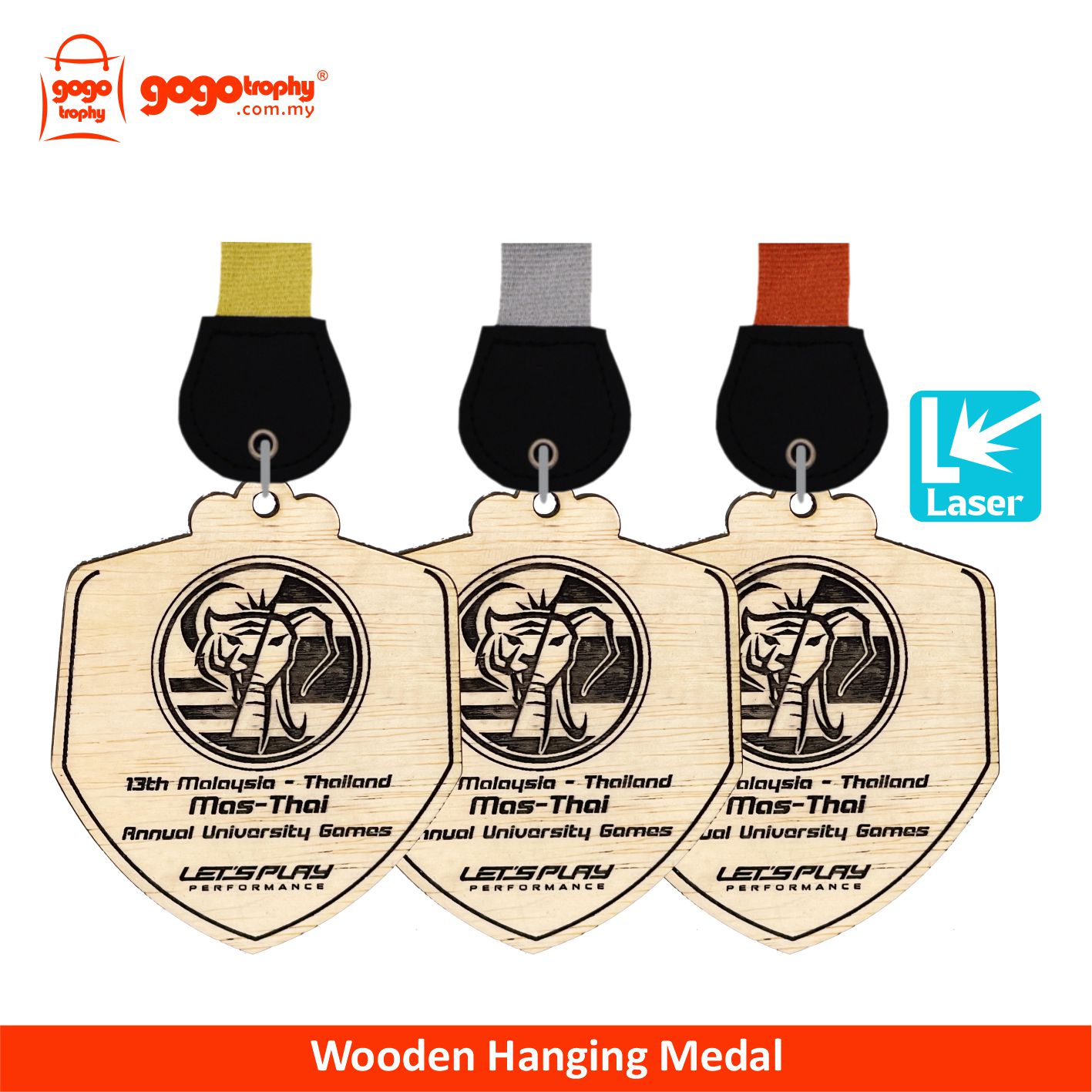 7580 Wooden Hanging Medal (GOLD, SILVER, BRONZE) . FREE LASER FINISHING !