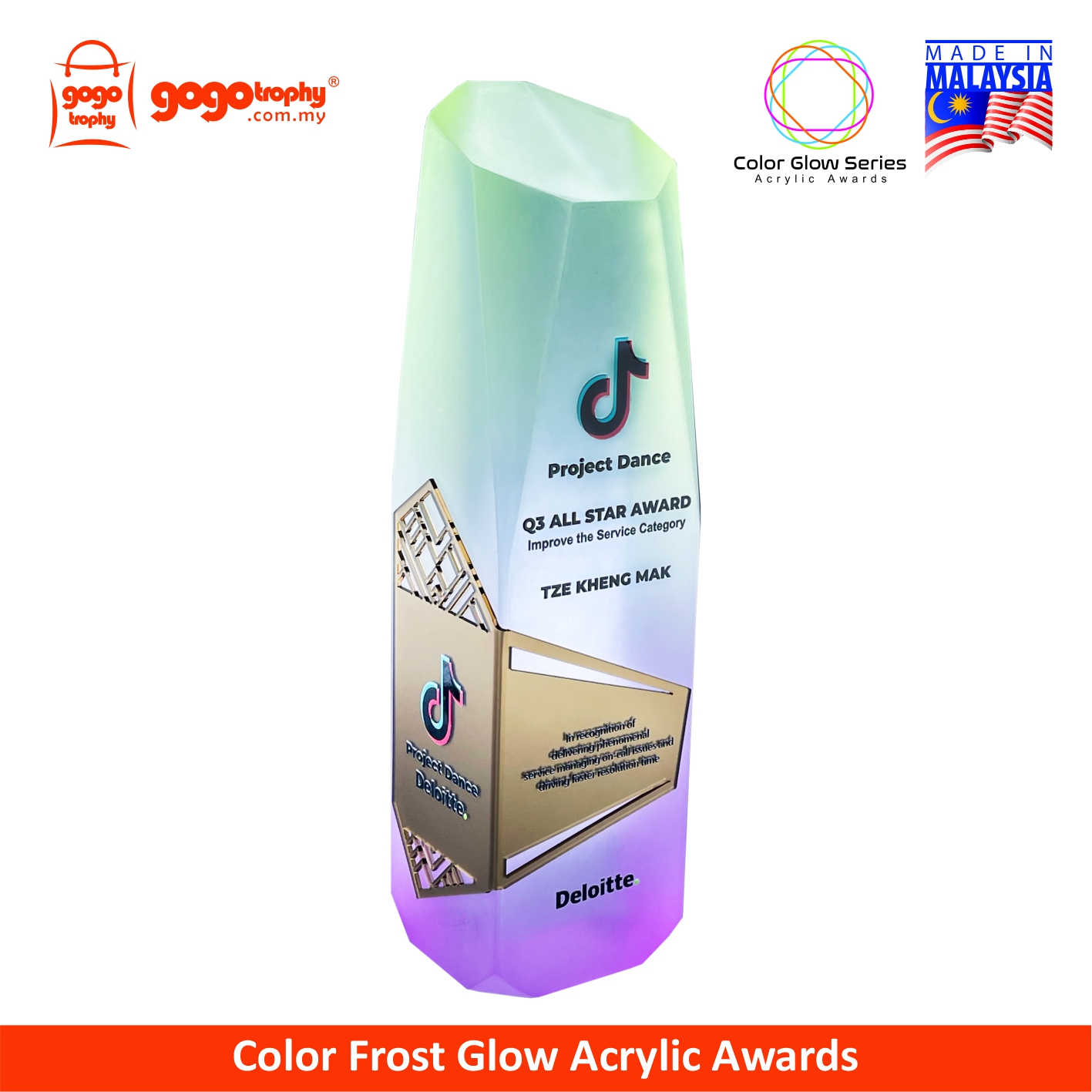 1048 - Color Glow Series Premium Acrylic Trophy - 240mm * 63mm * 58mm ( RM 410.50 )
