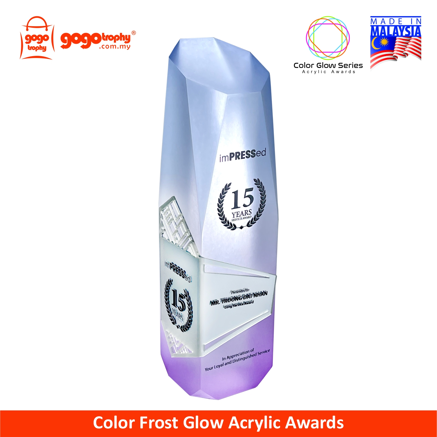 1062 - Color Glow Series Premium Acrylic Trophy - 240mm * 60mm * 58mm ( RM 410.50 )