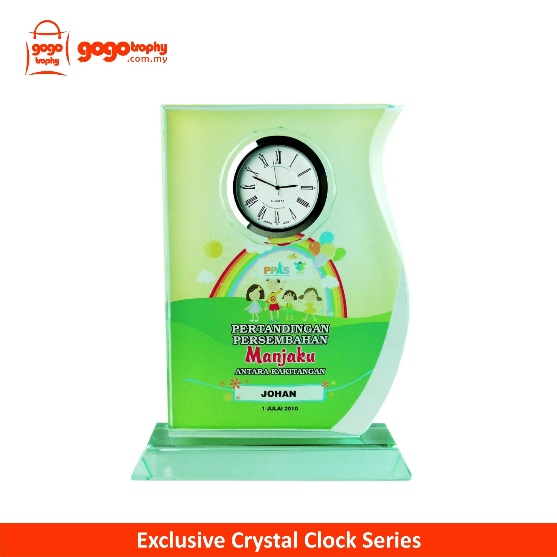 2016 Crystal Plaque c/w Clock Series with background artwork and the top quality clock to ensure you an accomplish crystal clock gift . FREE PRINTING !