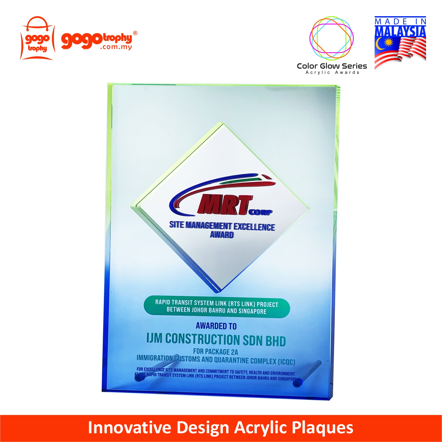 Elevate your recognition ceremony with our Color Glow Series Acrylic Awards - designed to impress with vibrant edges, a crystal-look high clarity appearance, and durable construction. Ideal for corporate recognition, employee awards, appreciation plaques, competition trophies, and graduation souvenirs. Personalize and custom with a logo and text. FREE artwork design & printing. NO minimum order quantity (MOQ).