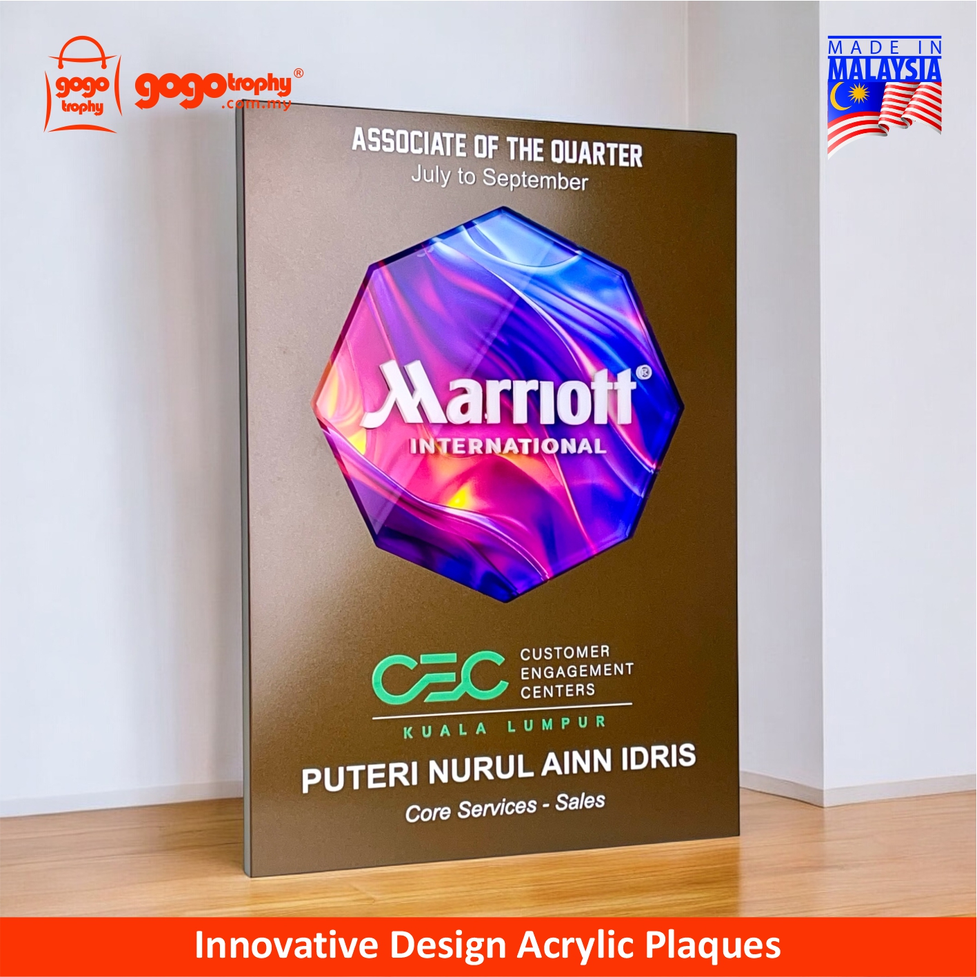 Elevate your recognition ceremony with our Innovative Design Series Acrylic Awards - designed to impress with vibrant edges, a crystal-look high clarity appearance, and durable construction. Ideal for corporate recognition, employee awards, appreciation plaques, competition trophies, and graduation souvenirs. Personalize and custom with a logo and text. FREE artwork design & printing. NO minimum order quantity (MOQ).