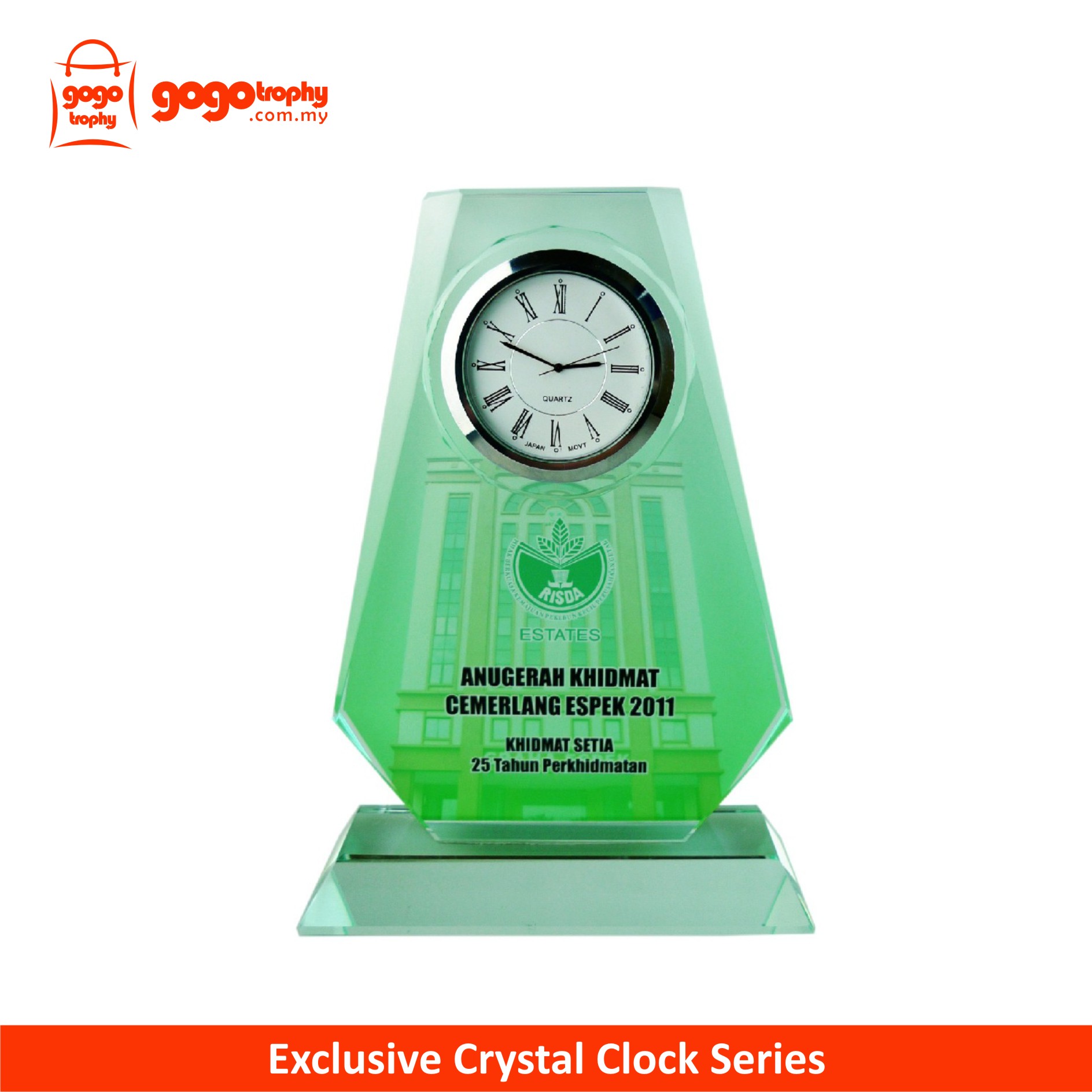 2018 Crystal Plaque c/w Clock Series with background artwork and the top quality clock to ensure you an accomplish crystal clock gift . FREE PRINTING !