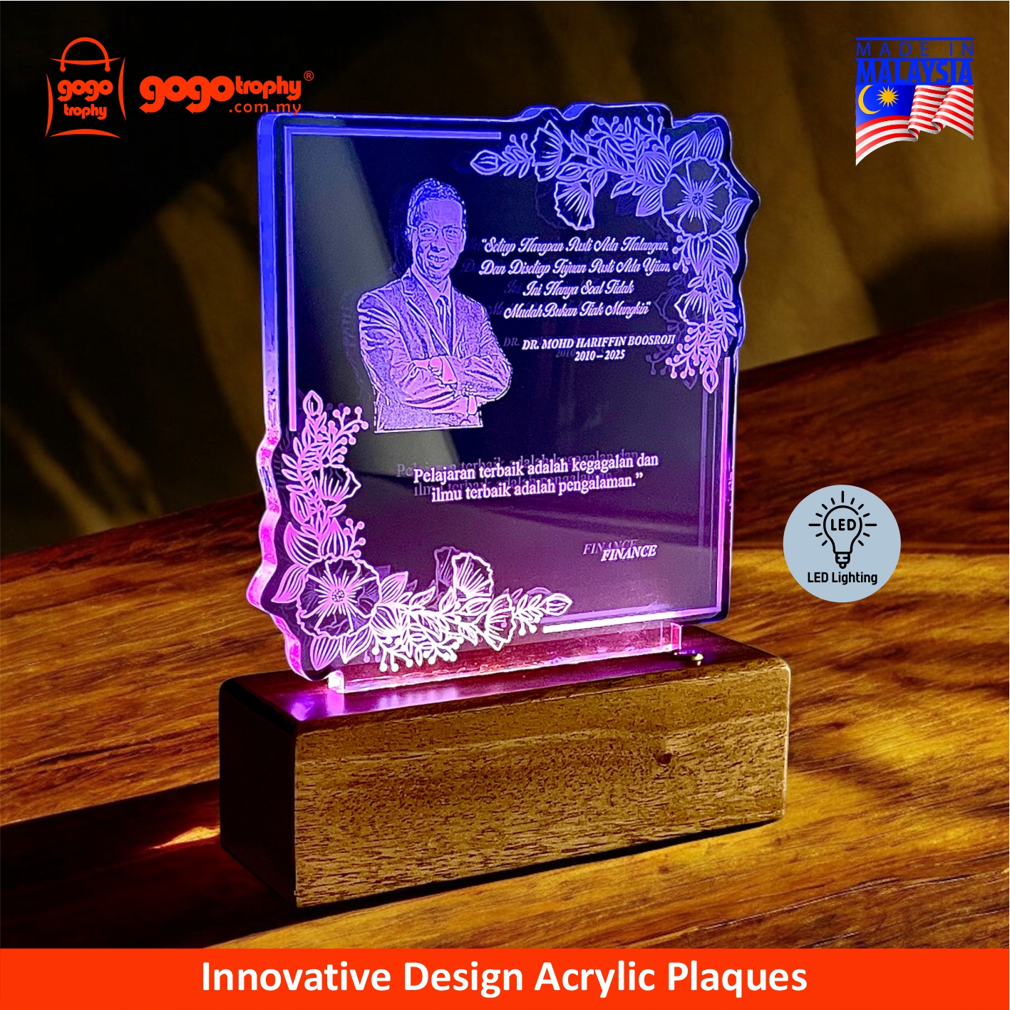 5265 - Color Glow Series LED Premium Acrylic Plaque Award - 225mm * 170mm * 60mm ( RM 346.00 )