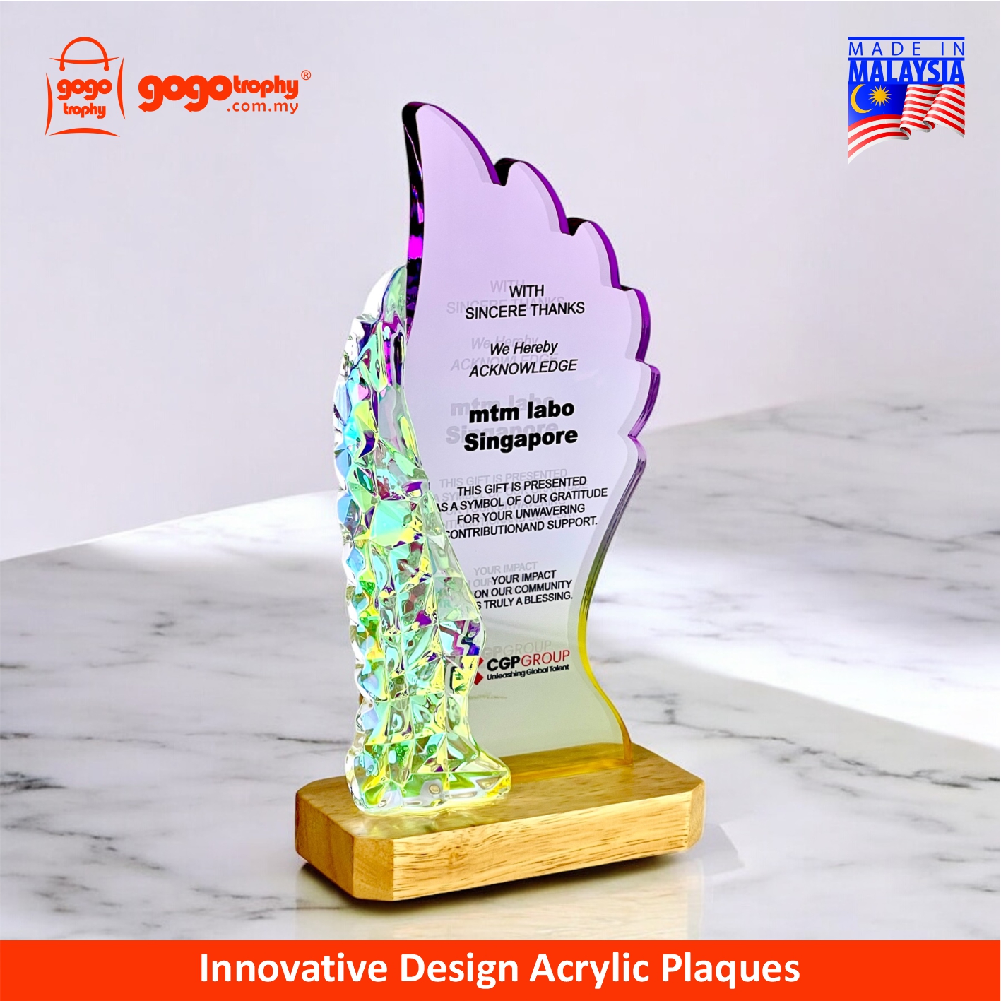 Elevate your recognition ceremony with our Color Glow Series Acrylic Awards - designed to impress with vibrant edges, a crystal-look high clarity appearance, and durable construction. Ideal for corporate recognition, employee awards, appreciation plaques, competition trophies, and graduation souvenirs. Personalize and custom with a logo and text. FREE artwork design & printing. NO minimum order quantity (MOQ).