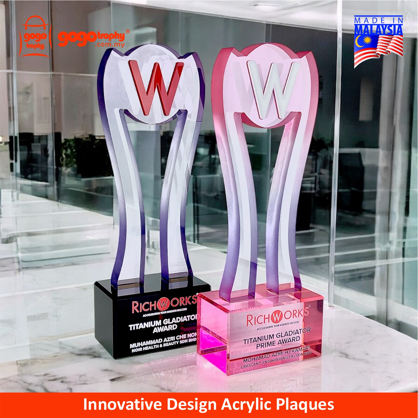 Elevate your recognition ceremony with our Color Glow Series Acrylic Awards - designed to impress with vibrant edges, a crystal-look high clarity appearance, and durable construction. Ideal for corporate recognition, employee awards, appreciation plaques, competition trophies, and graduation souvenirs. Personalize and custom with a logo and text. FREE artwork design & printing. NO minimum order quantity (MOQ).
