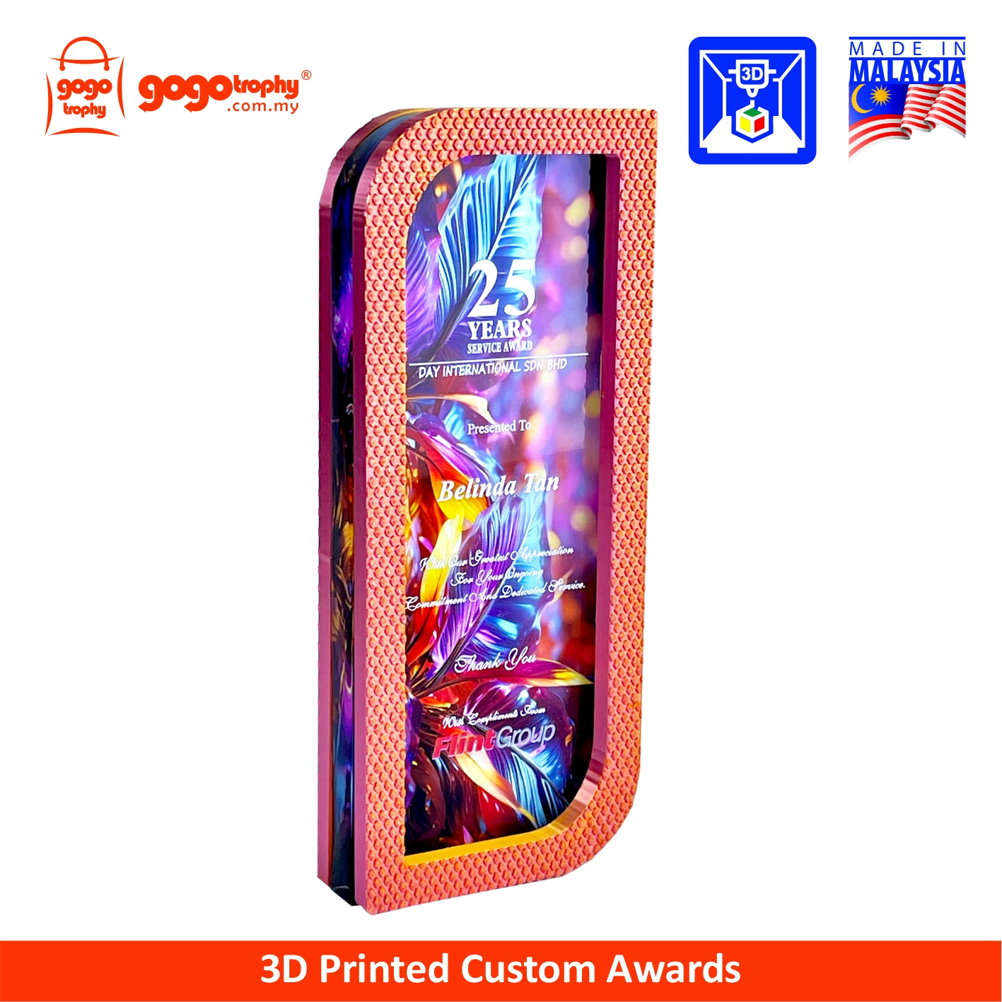 Bring creativity to your award ceremony with our custom-made 3D printed trophies, plaques, and awards. Lightweight and modern for futuristic awards. Ideal for corporate recognition, employee awards, appreciation plaques, competition trophies, and graduation souvenirs. Personalize and custom with a logo and text. FREE artwork design & printing. NO minimum order quantity (MOQ).