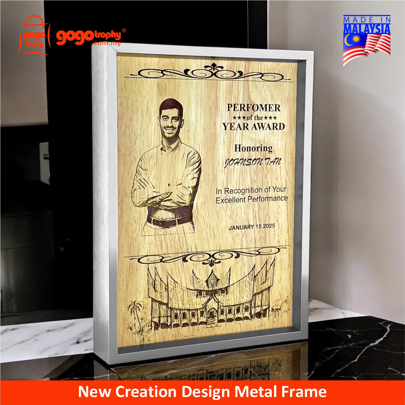 Frame your best memories! Perfect for displaying your certificates and your precious memories. Lightweight aluminium, durable and stylish. Elegant look fits any home, office, or gallery setting. Ideal for corporate recognition, employee awards, appreciation plaques, competition trophies, and graduation souvenirs. Personalize and custom with a logo and text. FREE artwork design & printing. NO minimum order quantity (MOQ).