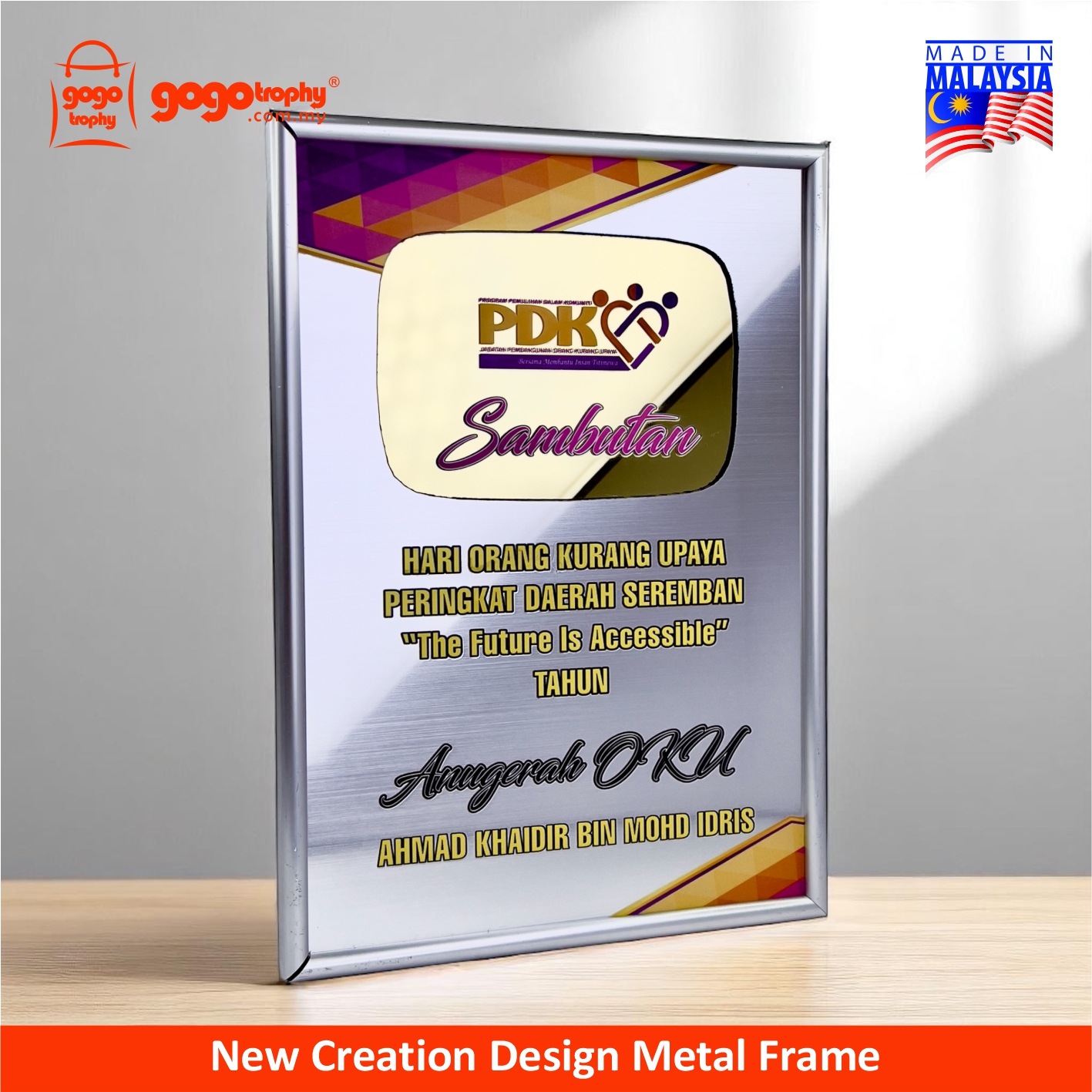 Frame your best memories! Perfect for displaying your certificates and your precious memories. Lightweight aluminium, durable and stylish. Elegant look fits any home, office, or gallery setting. Ideal for corporate recognition, employee awards, appreciation plaques, competition trophies, and graduation souvenirs. Personalize and custom with a logo and text. FREE artwork design & printing. NO minimum order quantity (MOQ).