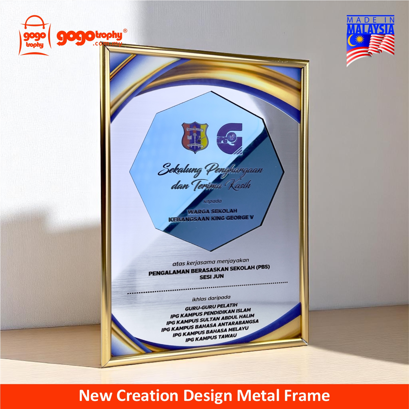 Frame your best memories! Perfect for displaying your certificates and your precious memories. Lightweight aluminium, durable and stylish. Elegant look fits any home, office, or gallery setting. Ideal for corporate recognition, employee awards, appreciation plaques, competition trophies, and graduation souvenirs. Personalize and custom with a logo and text. FREE artwork design & printing. NO minimum order quantity (MOQ).