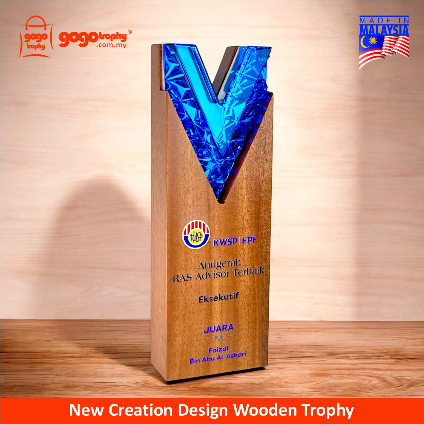 7685 - Premium Natural Wood Trophy - 250mm * 85mm * 40mm ( RM 175.50 )