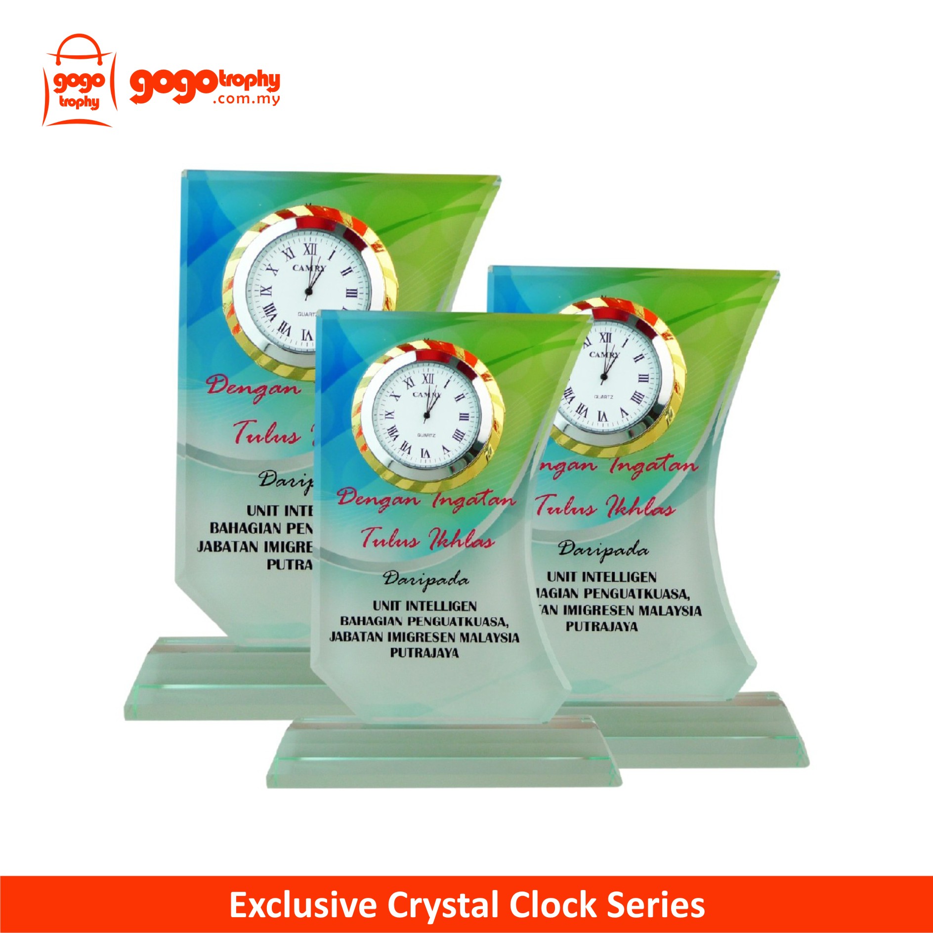 2039 Crystal Plaque c/w Clock Series with background artwork and the top quality clock to ensure you an accomplish crystal clock gift . FREE PRINTING !