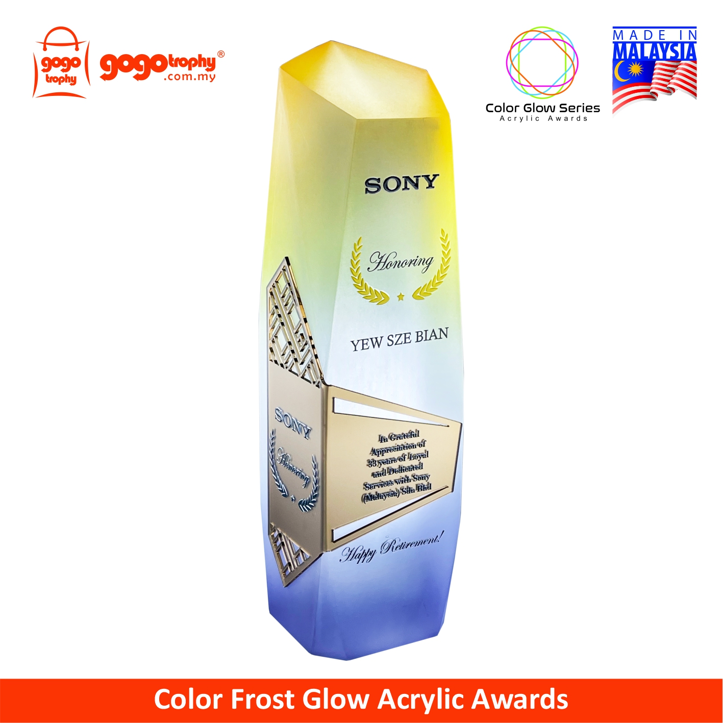 1051 - Color Glow Series Premium Acrylic Trophy - 240mm * 63mm * 60mm ( RM 410.50 )