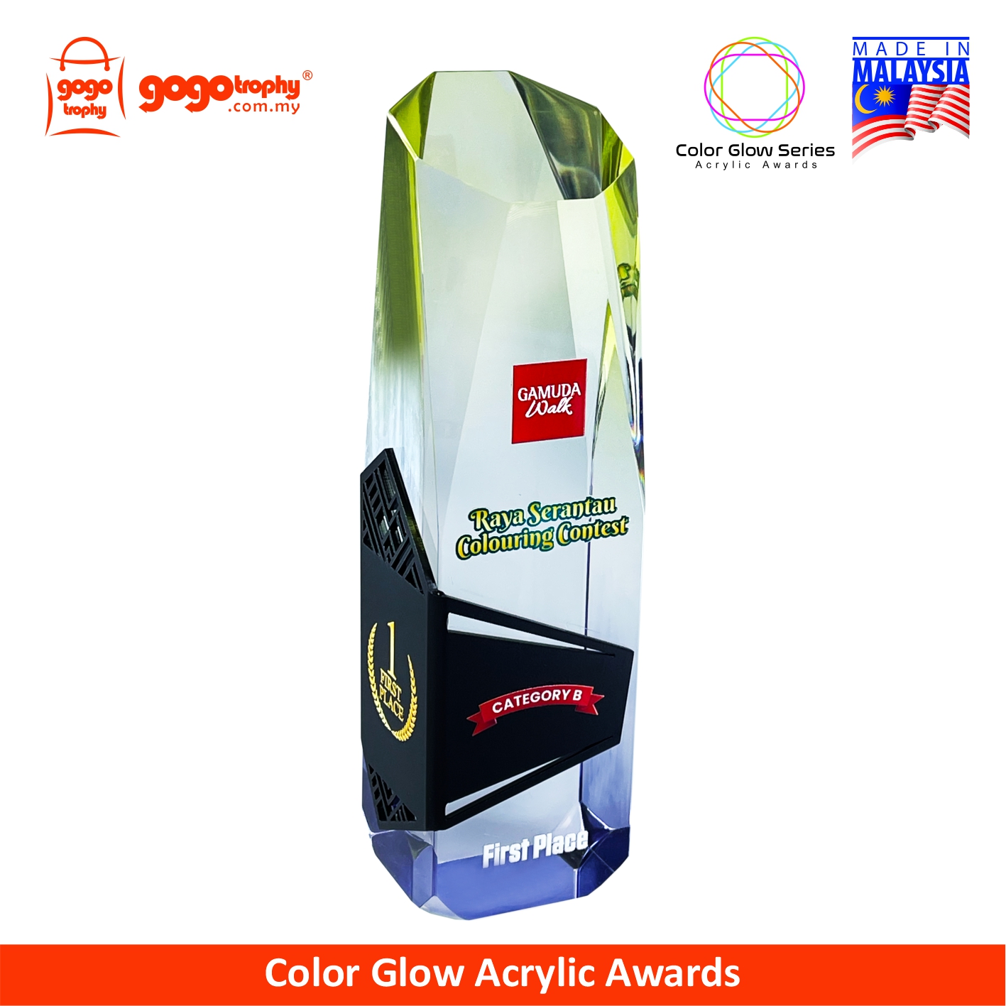 1078 - Color Glow Series Premium Acrylic Trophy - 238mm * 63mm * 58mm ( RM 367.50 )