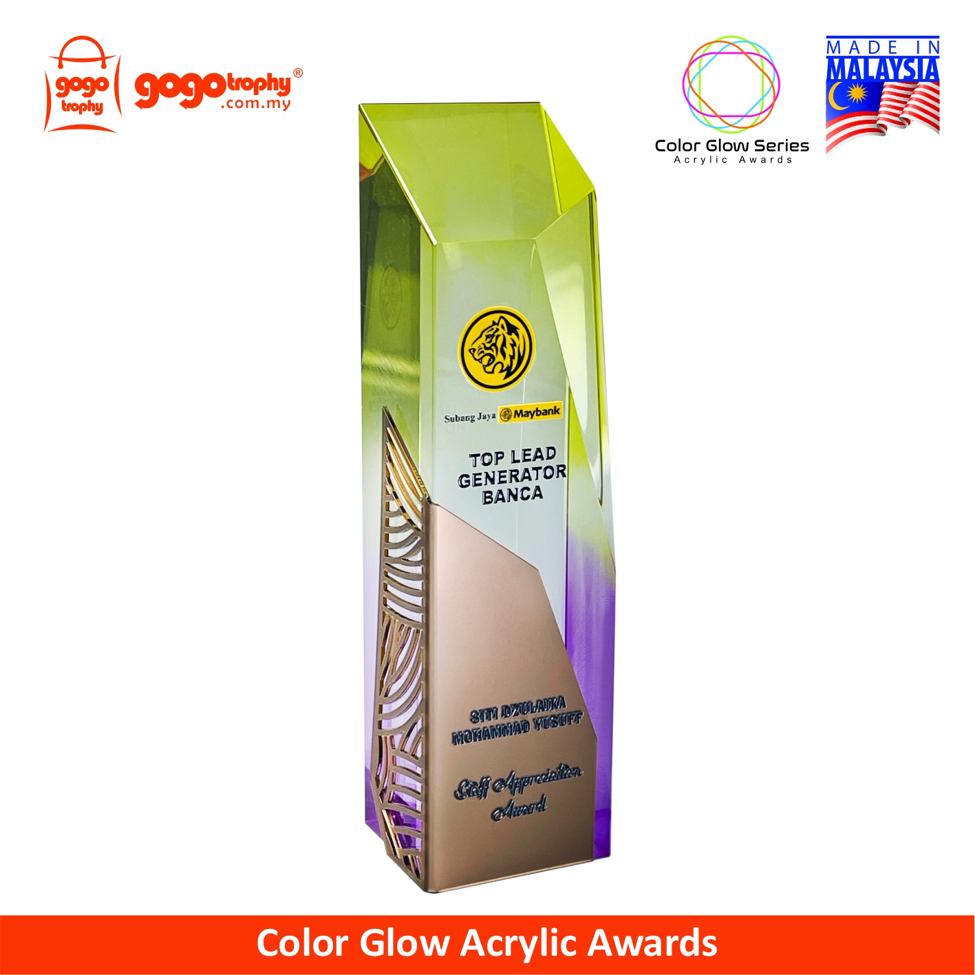 Elevate your recognition ceremony with our Color Glow Series Acrylic Awards - designed to impress with vibrant edges, a crystal-look high clarity appearance, and durable construction. Ideal for corporate recognition, employee awards, appreciation plaques, competition trophies, and graduation souvenirs. Personalize and custom with a logo and text. FREE artwork design & printing. NO minimum order quantity (MOQ).