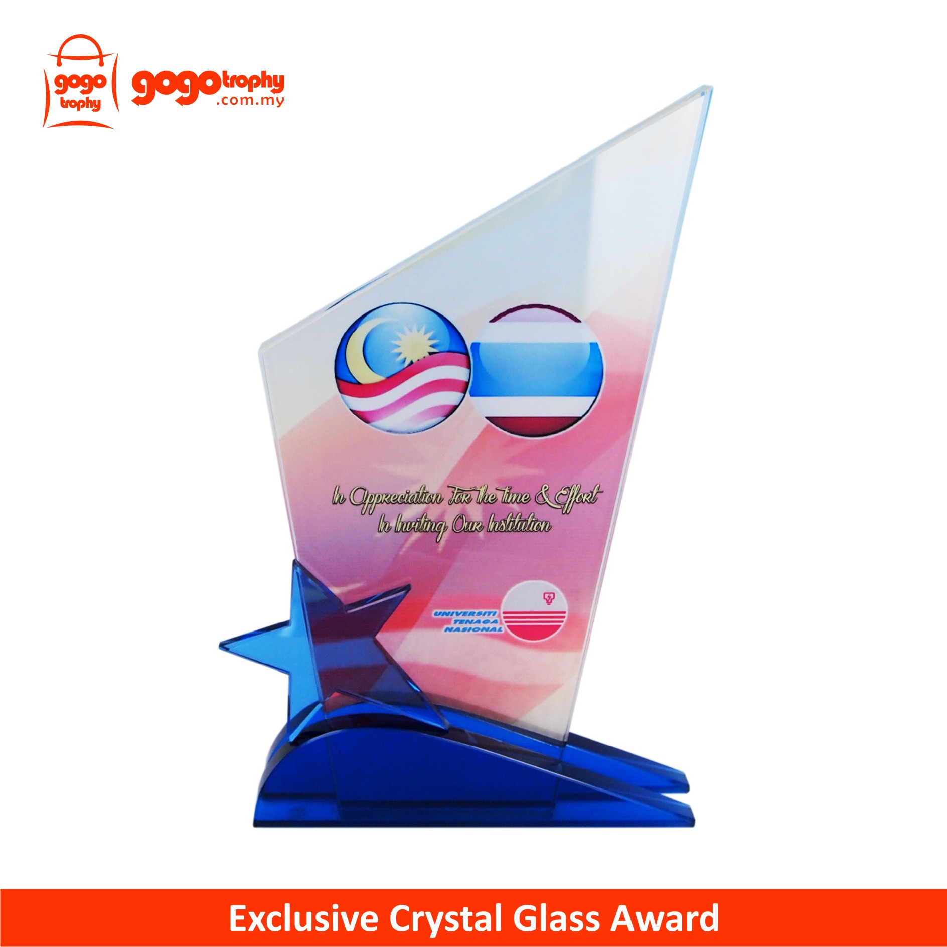 8218 Exclusive Crystal Glass Awards are the quality of the film that we used is one of the best . As such, the colors of the printing on the film will not be easily faded . FREE PRINTING !