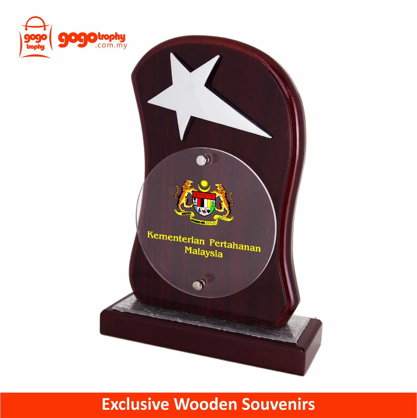 7124 Wooden Awards With Acrylic & Silver Star . FREE PRINTING !