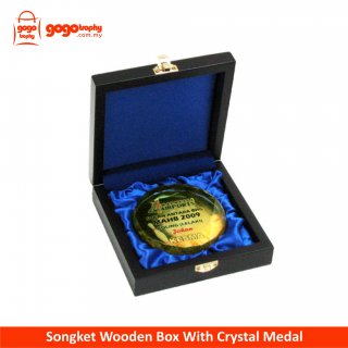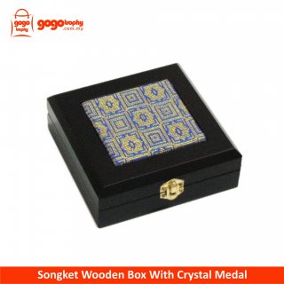 8118 Songket Wooden Box With Crystal Medal . FREE PRINTING On Medal !