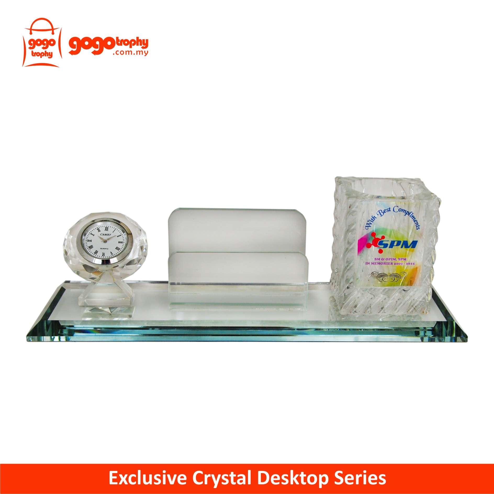 8274 Crystal Pen Holder & NC Holder With Clock . FREE PRINTING !