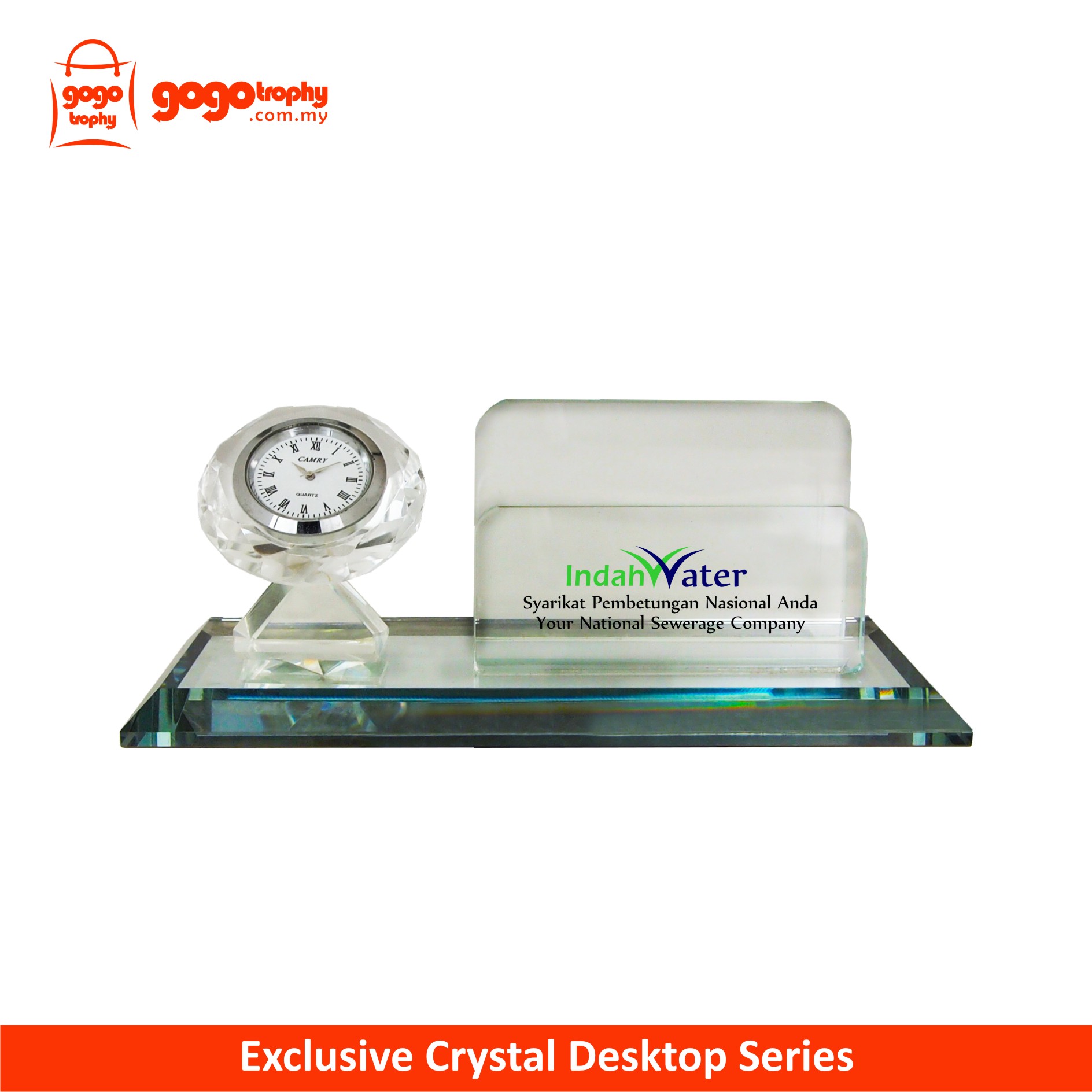 8279 Crystal Name Card Holder With Clock . FREE PRINTING !